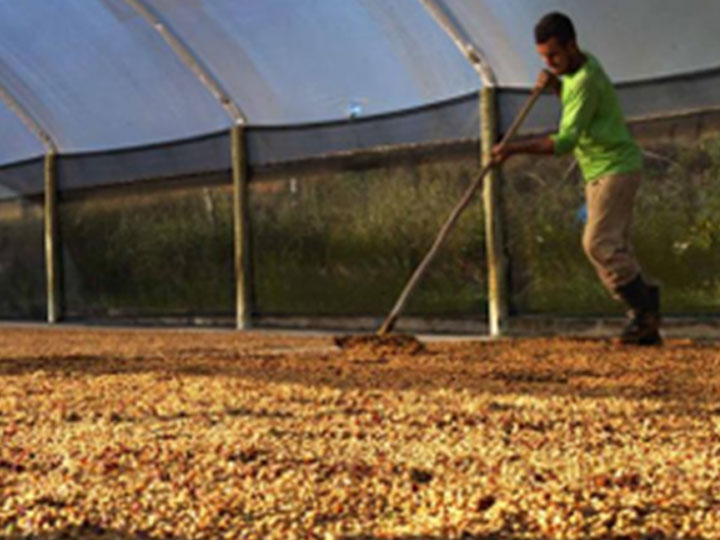 パウロ・レモス・メネゼス氏は、バレンシア州ピアタ県 シャパダ・ディアマンティーナ地方にあるモエテ農園の オーナーです。 チェリーはハンドピックで収穫され、収穫後最大2日以内にウェットプロセスで処理されます。ウェットプロセスとは、コーヒー豆を洗浄機に通して浮遊果実を分離し、 分離機を備えた脱穀機で脱殻します。その後、乾燥のために屋根付きのコンクリート製のパティオに運ばれます。乾燥は、パティオに最初に付着した水分と下層の果肉が長時間接触することでカビや雑菌が発生しないように、頻繁にひっくり返しながら丹念に行われます。ウェットプロセス中の各工程と パティオの手入れは、農園全員の献身的な努力を要する最優先事項です。